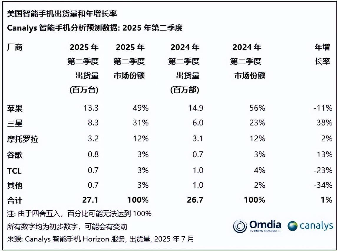 7月份的另一项数据显示,今年第二季度,印度已经超越我国成为美国智能手机的最大来源地。印度的手机出货量同比增长了240%,占到了美国进口智能手机总量的44%。